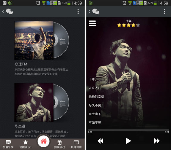 KTV,娱乐号,本地微信号的最爱,好的音乐盒能提升粉丝的粘性,让粉丝沉浸在音乐的世界里,舍不得离开。