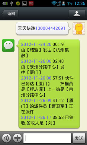 输入快递名称+运单号,可以快速查询快递的详细动态,收件从此不用愁。