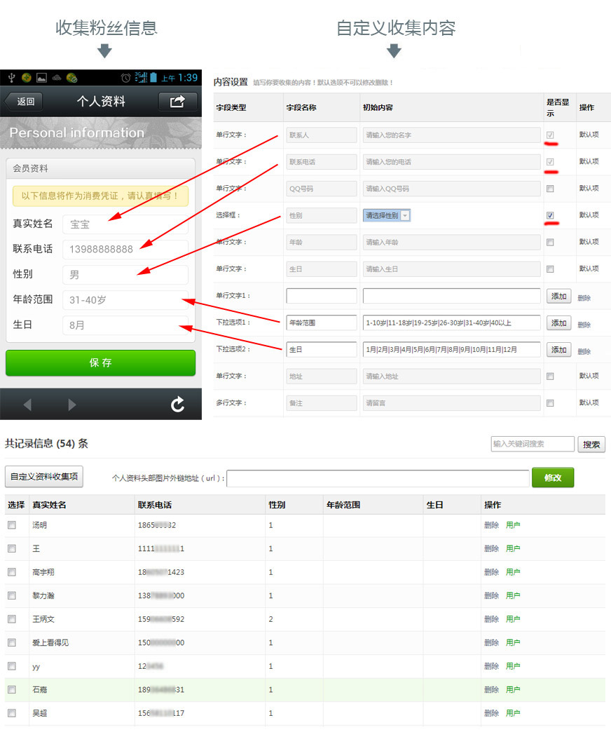 开启此功能,可以收集粉丝的资料,而且可以根据你的需求,自定义要收集的内容,结合在线订单,酒店预定等功能,设置管理员,可以直接在微信上管理订单,非常方便。
