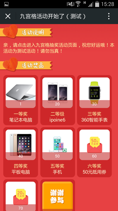3.活动奖品自由设置,直接展示给用户。