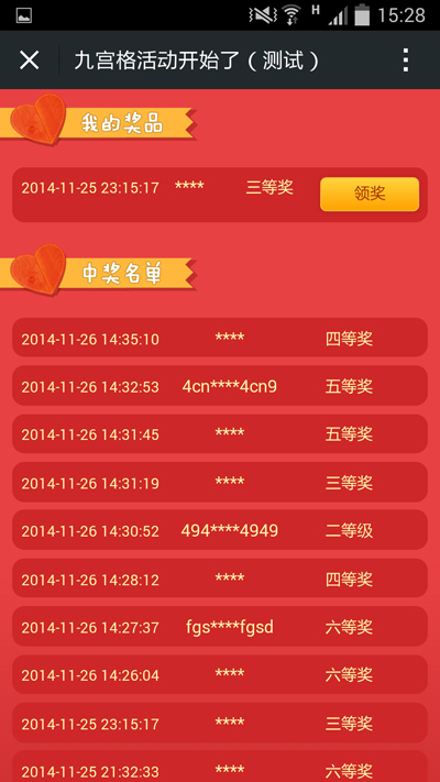 4.中奖奖品直接显示在页面,用户可以直接领奖。