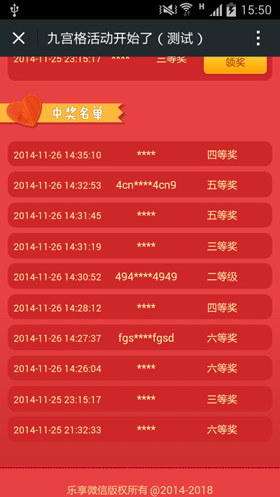 5.中奖名单即时展示,公开透明。
